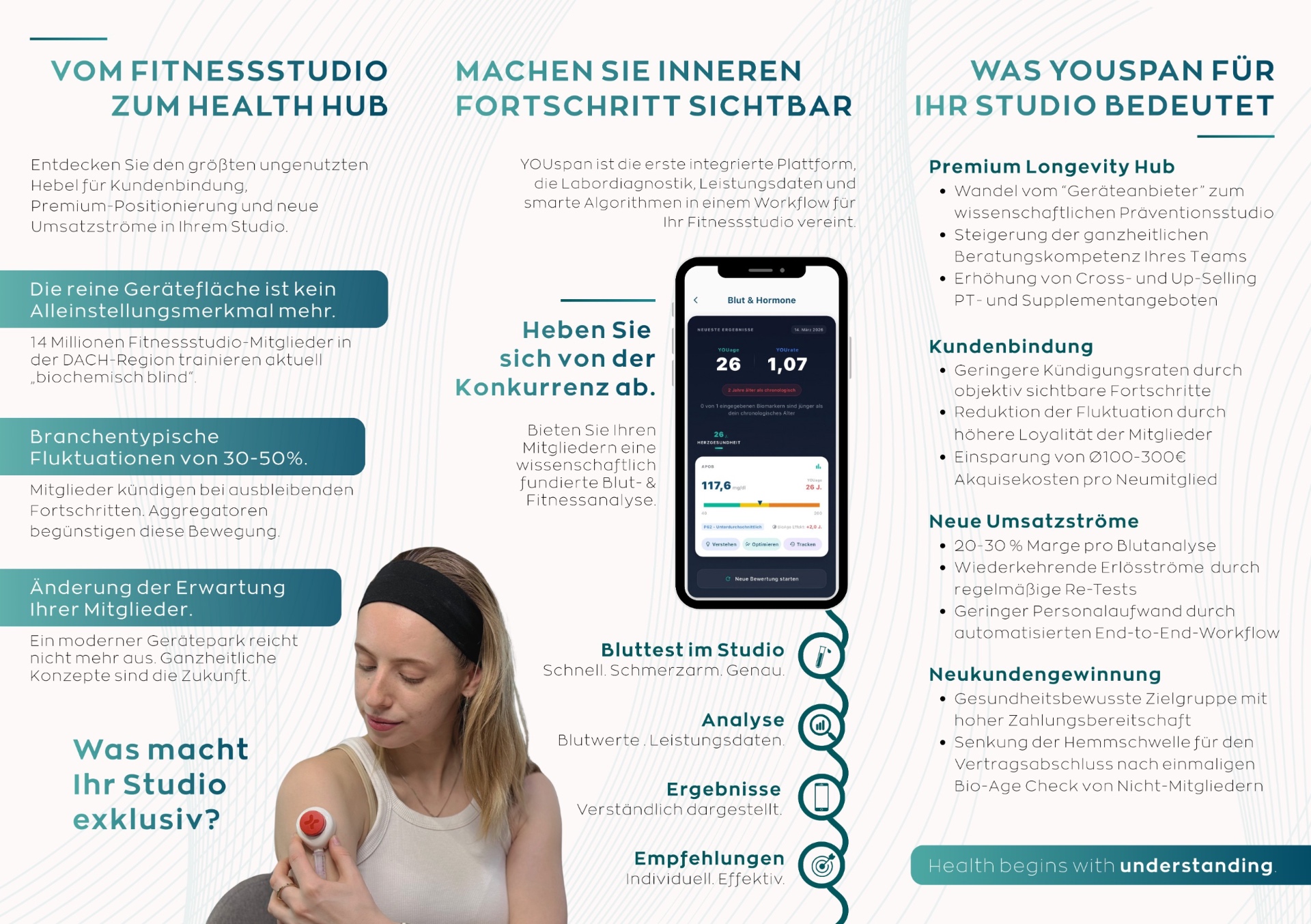 Margenstarke Einnahmequelle durch Bluttests – positionieren Sie Ihr Studio als „Longevity & Health Hub" mit wissenschaftlich fundiertem USP.